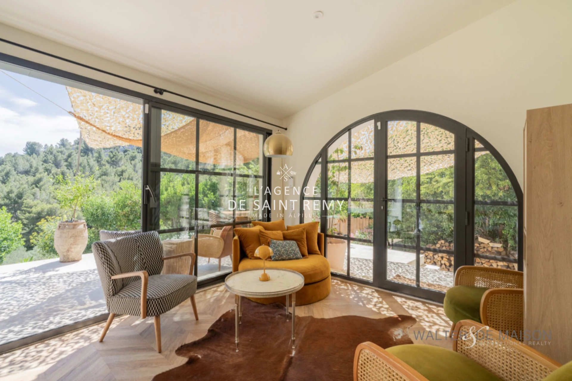 Without being isolated, this house enjoys an exceptional setting: an unobstructed view of nature, the Alpilles, the rocks, and the trees… a true haven of peace.