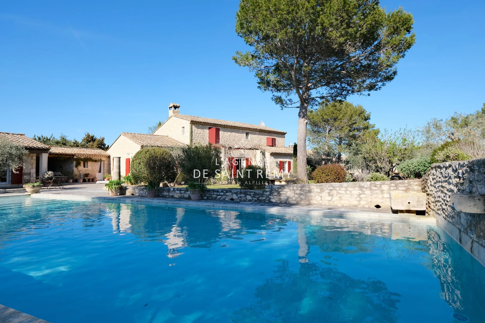 In a privileged setting at the foot of the Alpilles, in absolute tranquility and free from any disturbances, surrounded by olive trees, discover this magnificent stone property with a total area of nearly 350 m², including the main house and its outbuildings, tucked away from prying eyes while being just a few minutes from the center of Saint-Rémy-de-Provence.