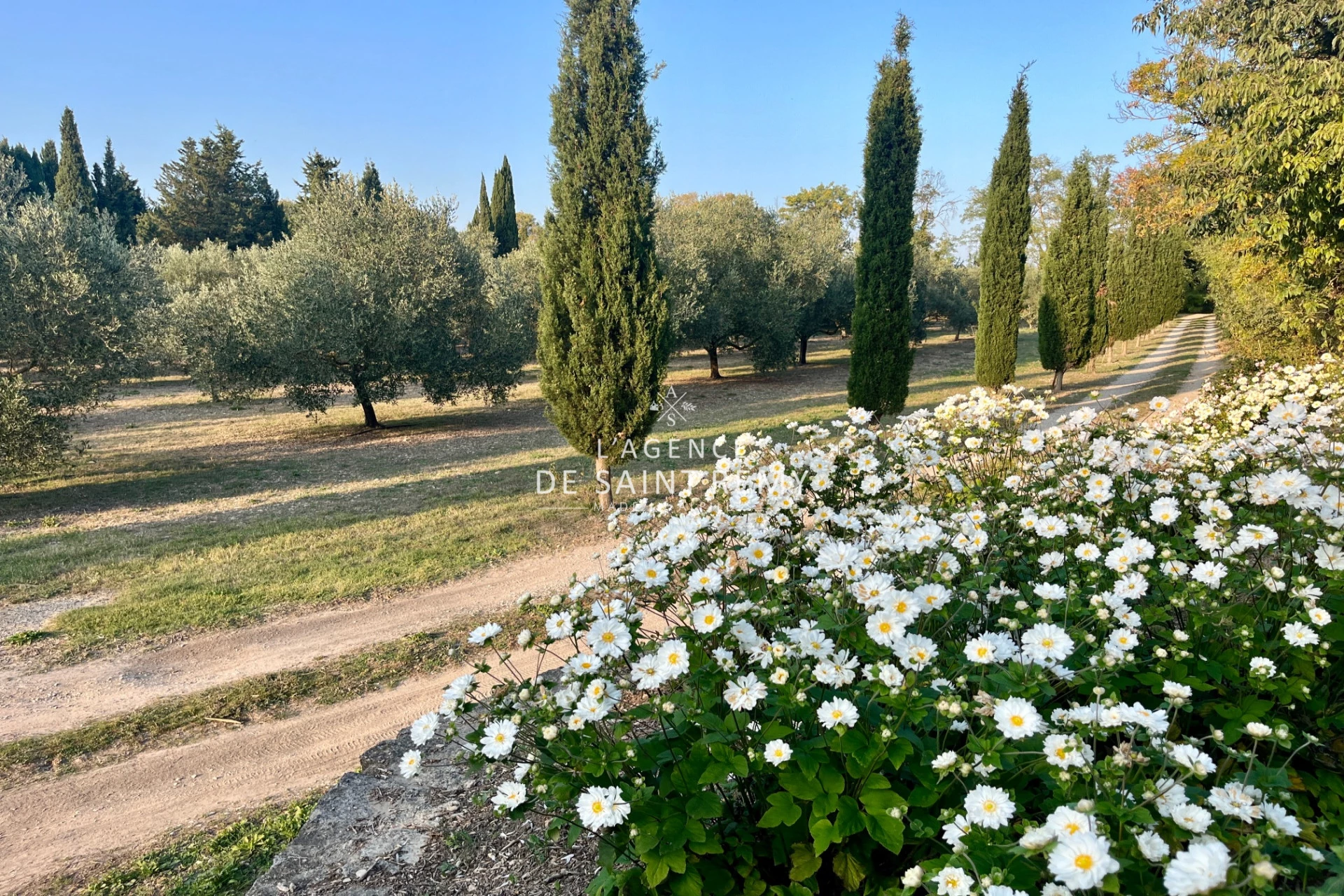 À l'extérieur, le jardin conserve tout le cachet d'un parc méditerranéen traditionnel, abritant environ 300 oliviers, de majestueux platanes et diverses essences locales qui viennent sublimer cet écrin de verdure. La propriété est également équipée d'un grand garage et un permis a été accordé pour la création d'une piscine.