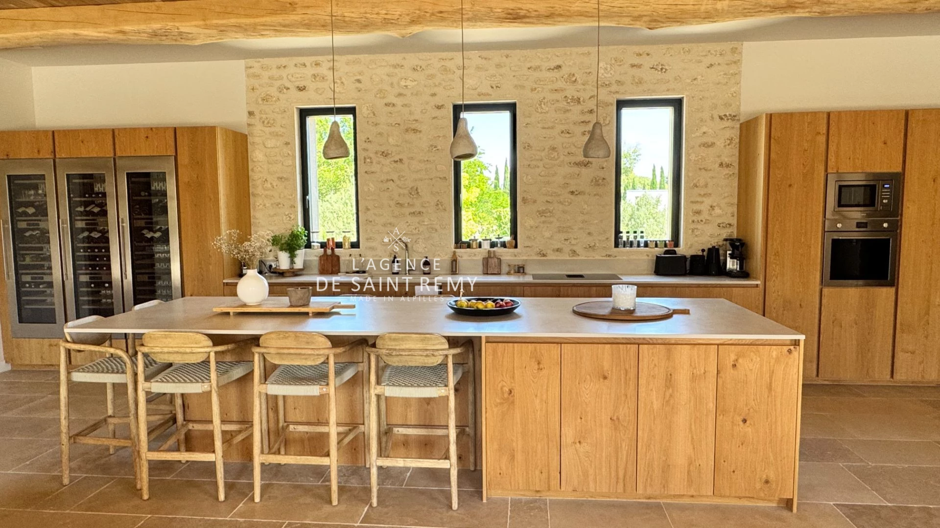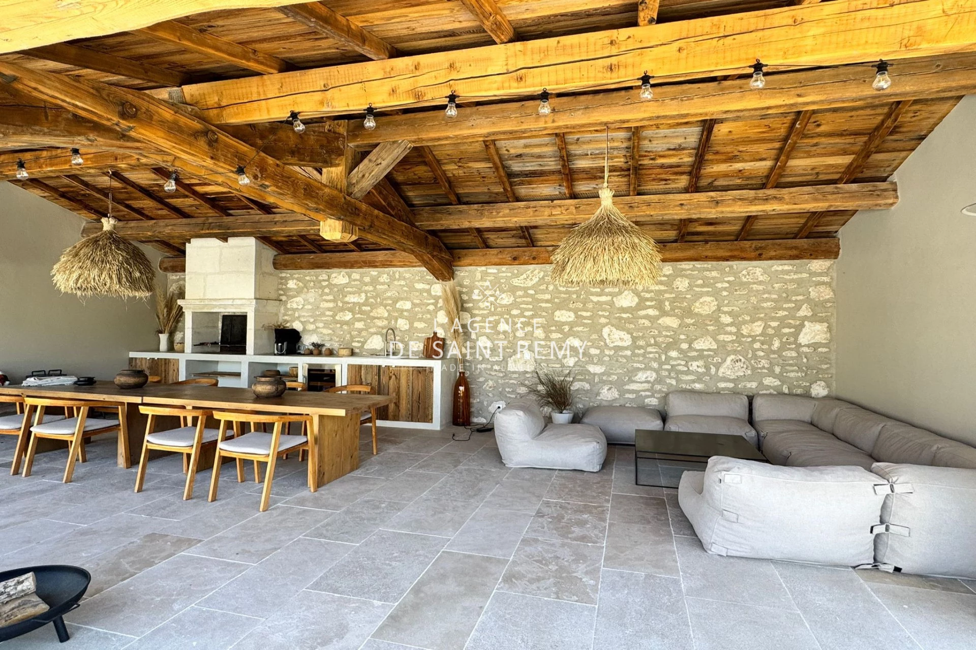En exclusivité à l'Agence de Saint Rémy, Située au coeur tranquille de Saint Rémy de Provence, cette maison offre non seulement une superbe vue mais également tout le charme d'une rénovation réalisée avec des matériaux de qualité. Les volumes impressionnants de chaque pièce, et plus particulièrement de la pièce de vie avec son plafond en bois ancien et son sol en pierre, créent une atmosphère chaleureuse et accueillante. Cela inclut une suite parentale de plus de 68 m² ainsi que deux autres chambres en suite. À l'étage, vous trouvez deux chambres supplémentaires avec leurs propres salles d'eau. Le rez-de-jardin est dédié à la détente et au divertissement avec une salle de sport, un salon, une cave à vin et un salon de cinéma doté d'un équipement spécialisé. Une buanderie et un espace de rangement complètent cet ensemble. Le jardin de 1640 m2 comprend divers espaces aménagés avec soin. Vous pouvez profiter d'un fabuleux pool house de 60 m² doté d'une cheminée, ou vous détendre sur la terrasse ombragée agrémentée d'une treille. Les amoureux de plein air apprécieront également la belle terrasse attenant à la suite parentale, le terrain de boules, la piscine 11X4, la fontaine, l'abri voitures et les murs en pierre qui rajoutent un charme supplémentaire à l'ensemble. Chaque recoin de cette propriété a été pensé pour votre plaisir et votre confort. Venez découvrir cet écrin d'exception sans plus attendre.